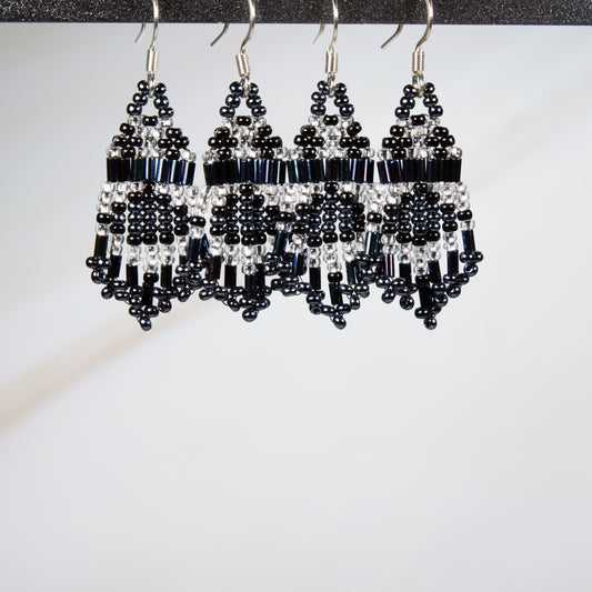 Long Black Earrings with Faceted Glass