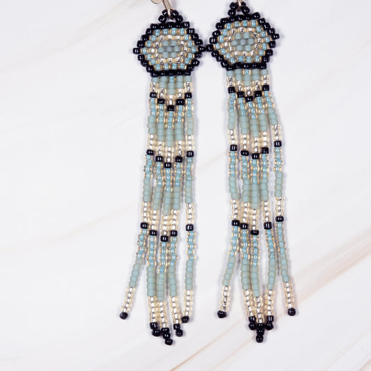 Blue and Silver Fringe Earrings