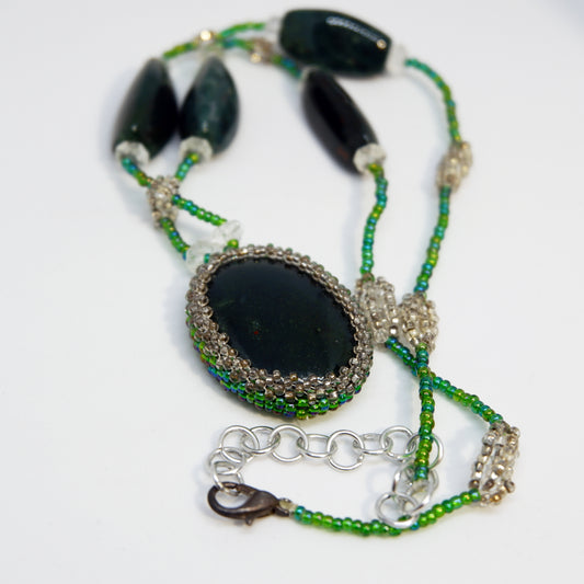 Green Agate and Quartz Necklace - One-of-a-Kind