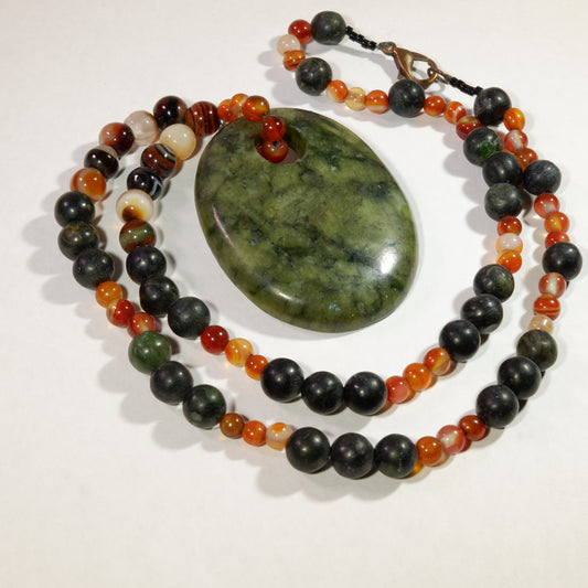 Russian Serpentine, Red Agate, and Black Agate Necklace