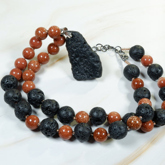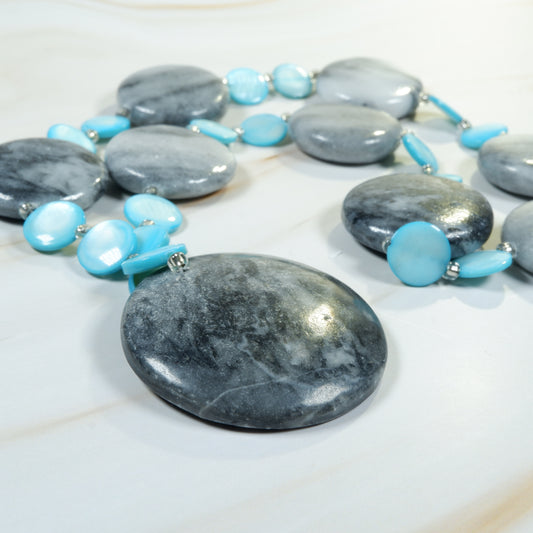 Necklaces featuring natural gemstones such as Agate, Serpentine, Jasper, Moonstone, Garnet, and Aventurine, as well as Quartz and Crystals