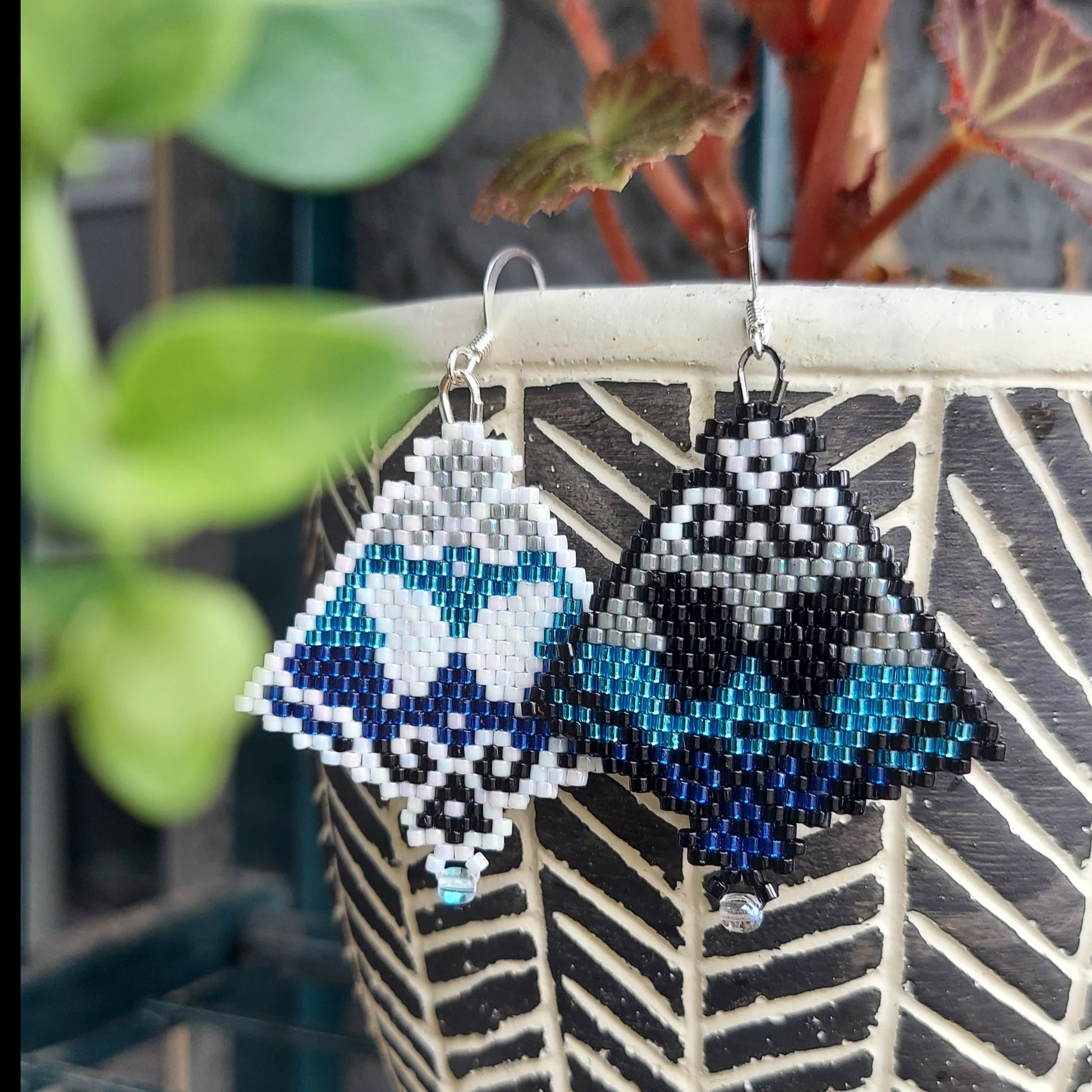 Beautiful beaded earrings featuring a butterfly design in Summer Rain color pallette. Available in light or dark.