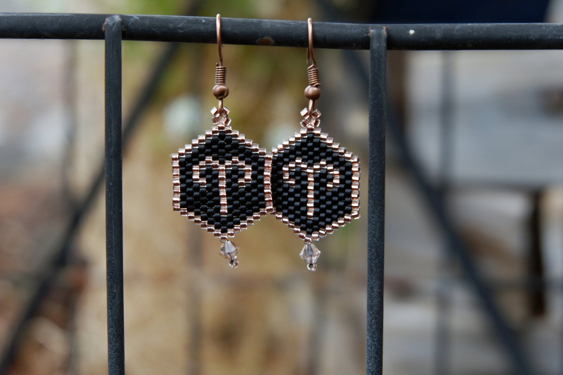 Aries March 21 - April 19 Small but cute zodiac earrings featuring the Aries sign. These earrings come in matte black and copper, as well as red and black, or choose your own color combination by requesting a custom order! Red is the color associated with the Aries sign which symbolizes passion, excitement, and fire. Comes with a crystal on each earring. Perfect gift for the Aries in your life!