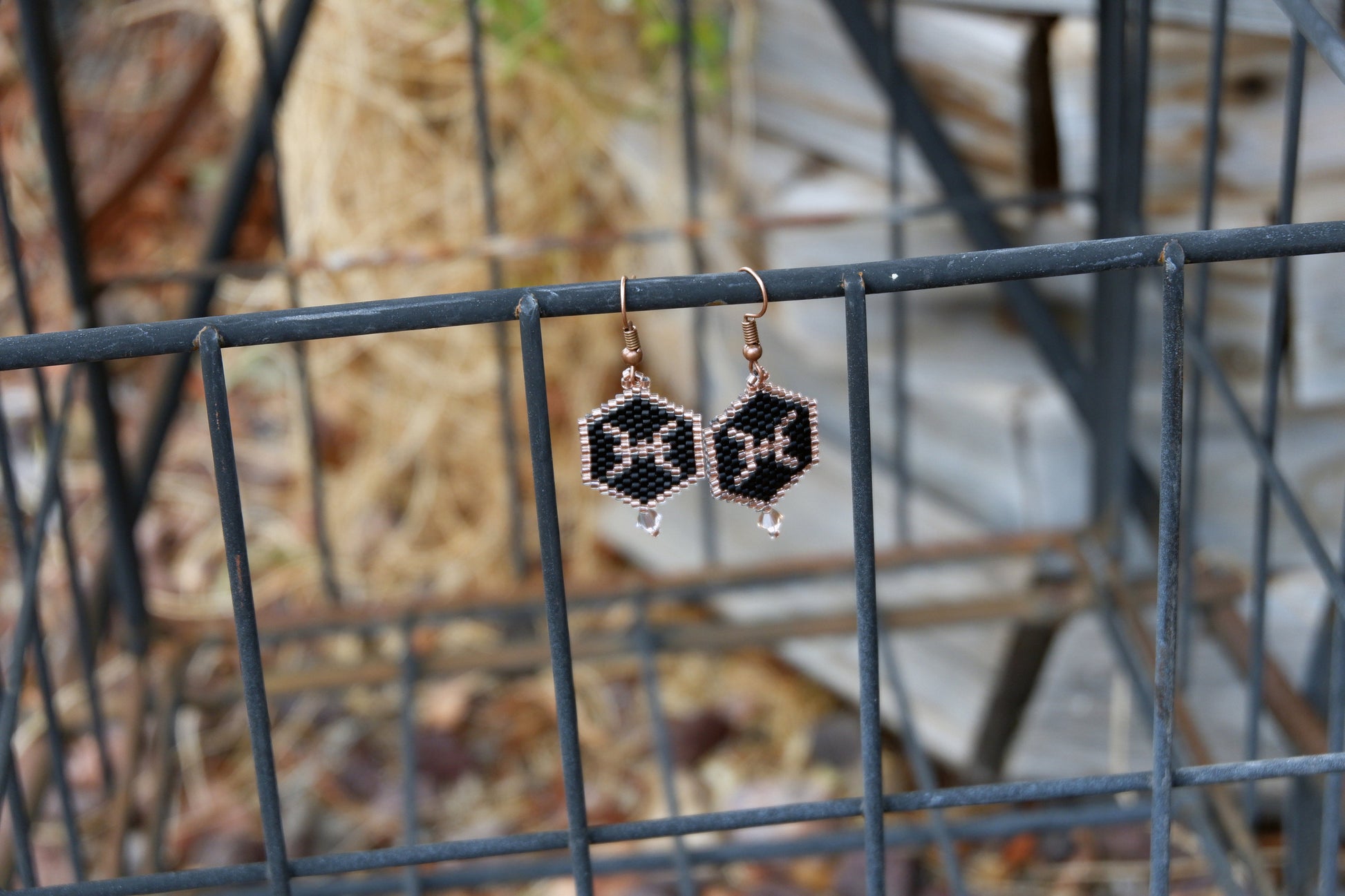 Pisces February 19 - March 20th Small but cute zodiac earrings featuring the Pisces sign. These earrings come in matte black and copper, as well as light green and black, or choose your own color combination by requesting a custom order! Light green is one of the colors associated with the Pisces sign which symbolizes renewal, inspiration, and healing. Comes with a crystal on each earring. Perfect gift for the Pisces in your life!